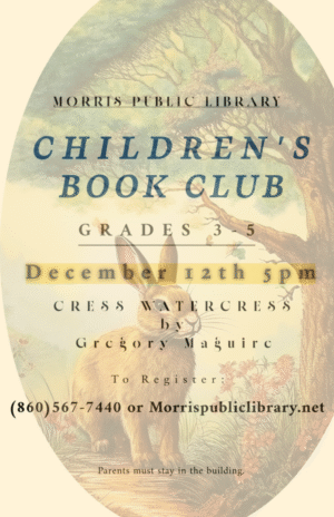Children’s Book Club, Grades 3-5, Friday, December 12, 2025, 5 PM.