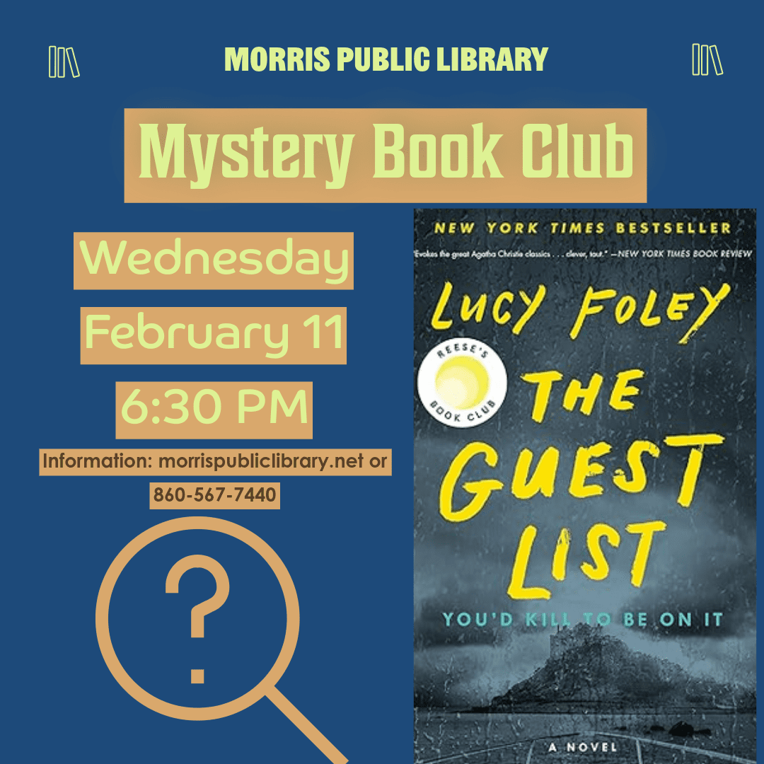 The Mystery Book Club will take place at the Morris Public Library on Wednesday, February 11, at 6:30 ...