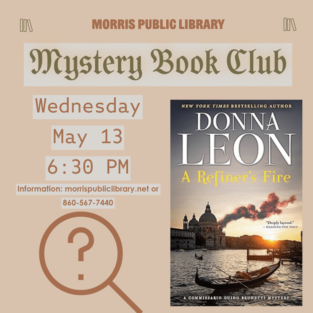 The Mystery Book Club will take place at the Morris Public Library on Wednesday, May 13, at 6:30 ...